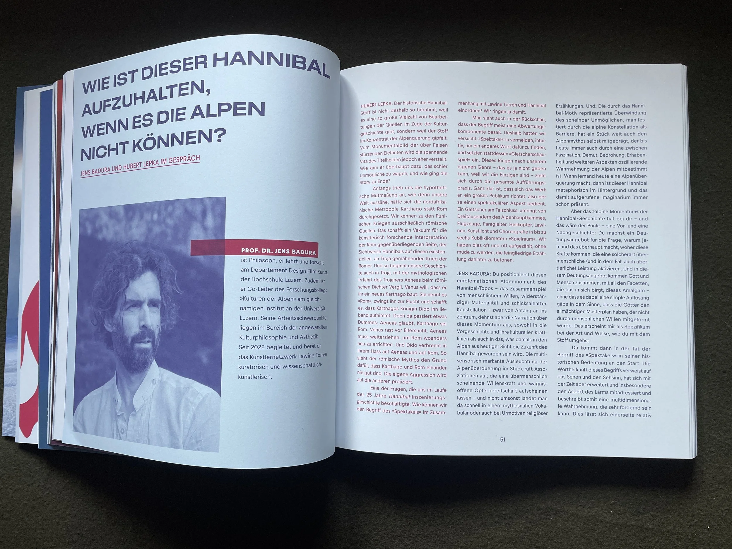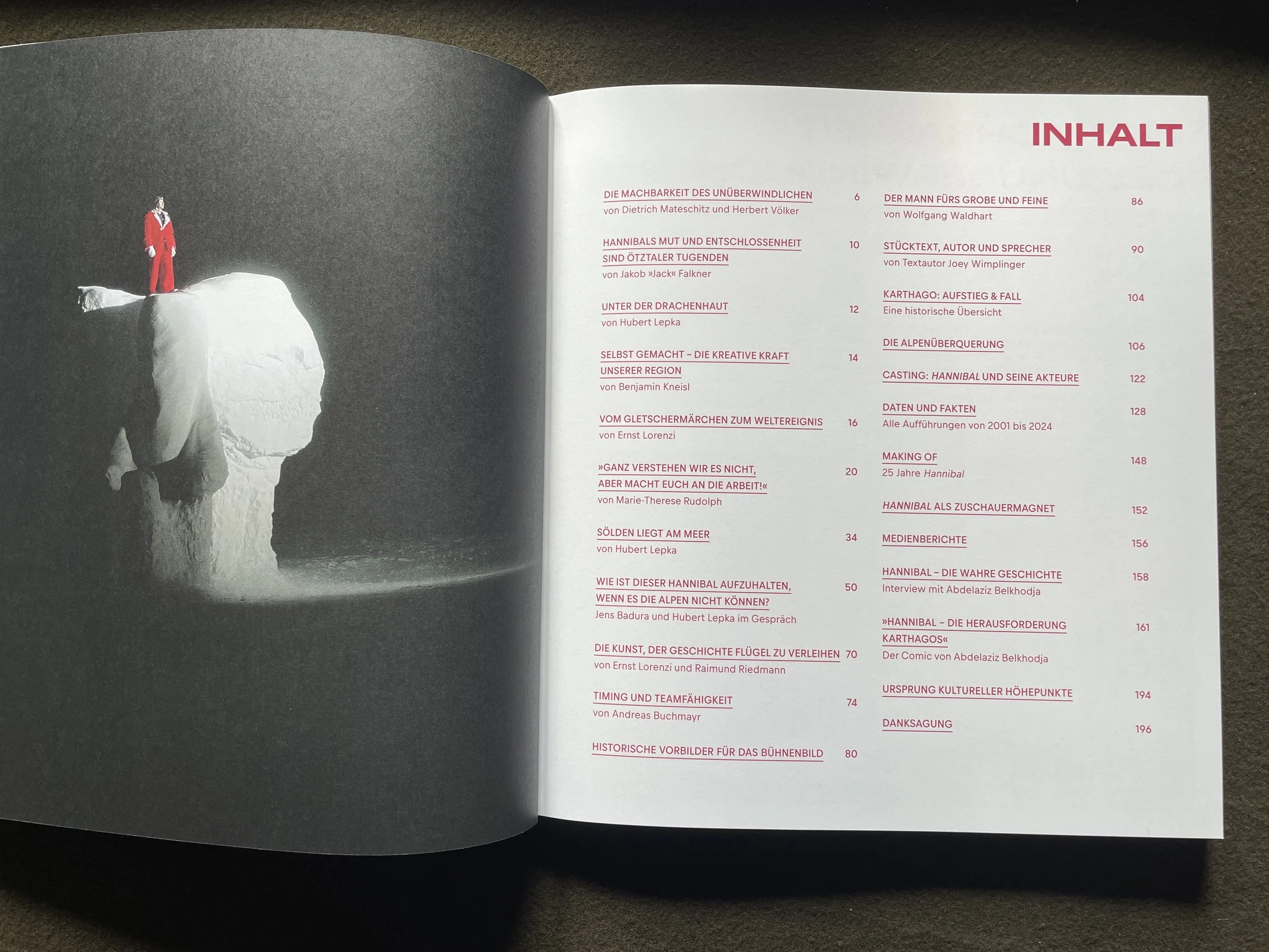 „Blättern wir durch 25 Jahre Hannibal, sticht eines sofort ins Auge: in diesem Buch geht man wie durch eine Ausstellung angesehenster Theater- und Sportfotografen. Wir analysieren die reale Geschichte des Karthagers einerseits und 25 Jahre Aufführungsgeschehen andererseits. Wir erzählen von unseren Recherchen rund um das Mittelmeer, vor und hinter dem Alpenhauptkamm, von Tunis bis München. In dem Vierteljahrhundert haben innerhalb dieses Projekts viele Vieles erlebt. In dem vorliegenden Band sammeln sich einige bemerkenswerte Anekdoten“, versichert Ernst Lorenzi, Initiator des Projekts und Herausgeber des Buchs.